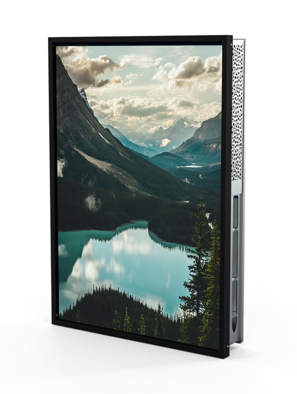 - Hang art on the unit using its integrated hanging system (works with wire-backed artwork)